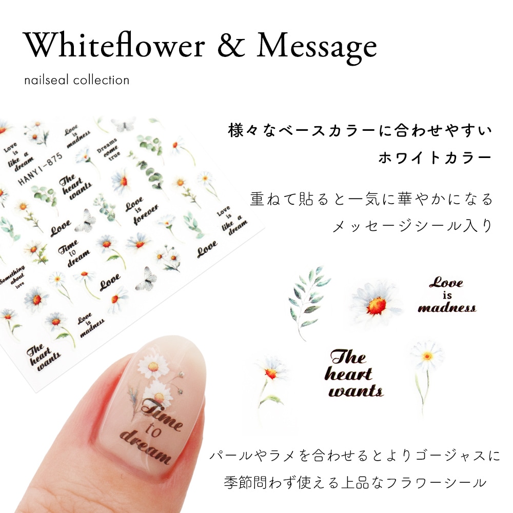 【ネコポス送料無料】ネイルシール ホワイトフラワー&メッセージシール