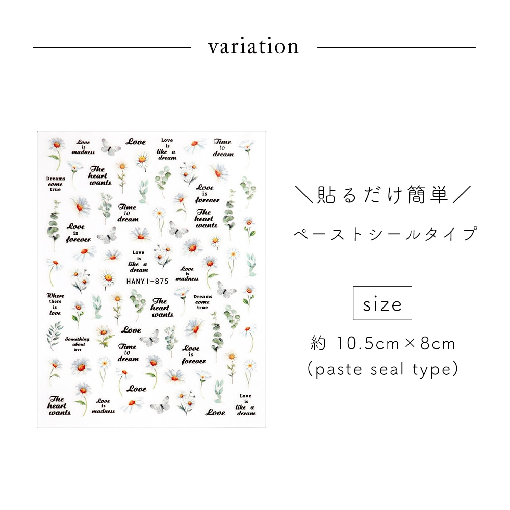 トップ > ネイルアート用品 > ネイルシール > ネイルシール > フラワー&ボタニカル > 【ネコポス送料無料】ネイルシール ホワイトフラワー&メッセージシール