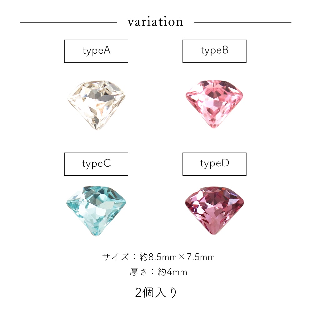 トップ > ラインストーン > Vカットストーン > 【ネコポス送料無料】ラインストーン ダイヤモンド型ストーン -Vカット- 全4種 2個入り
