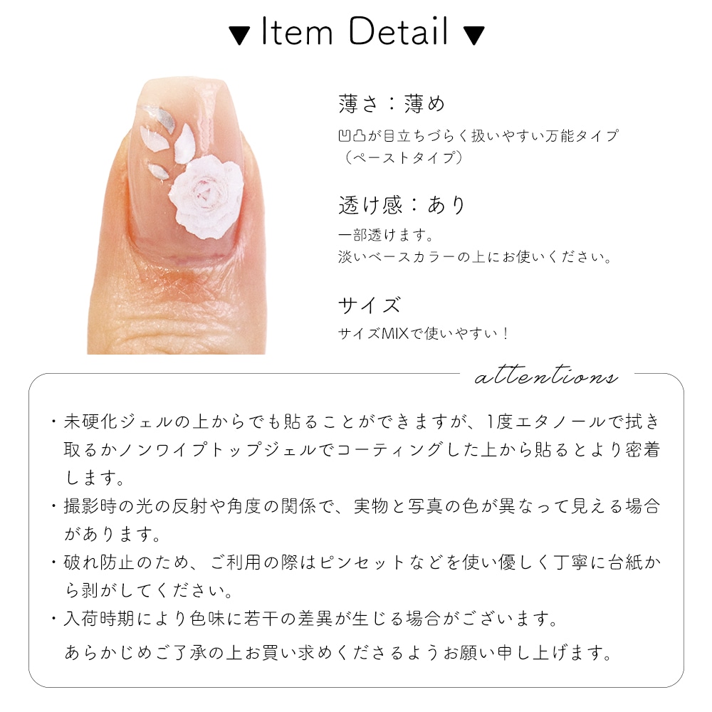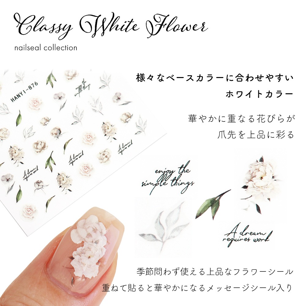 トップ > ネイルアート用品 > ネイルシール > ネイルシール > フラワー&ボタニカル > 【ネコポス送料無料】ネイルシール クラッシーホワイトフラワーシール
