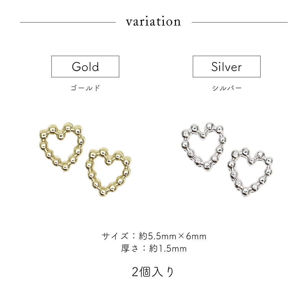 【ネコポス送料無料】ネイルパーツ メタルブリオンハートパーツ [ゴールド 金/シルバー 銀] 全2色 2個入り