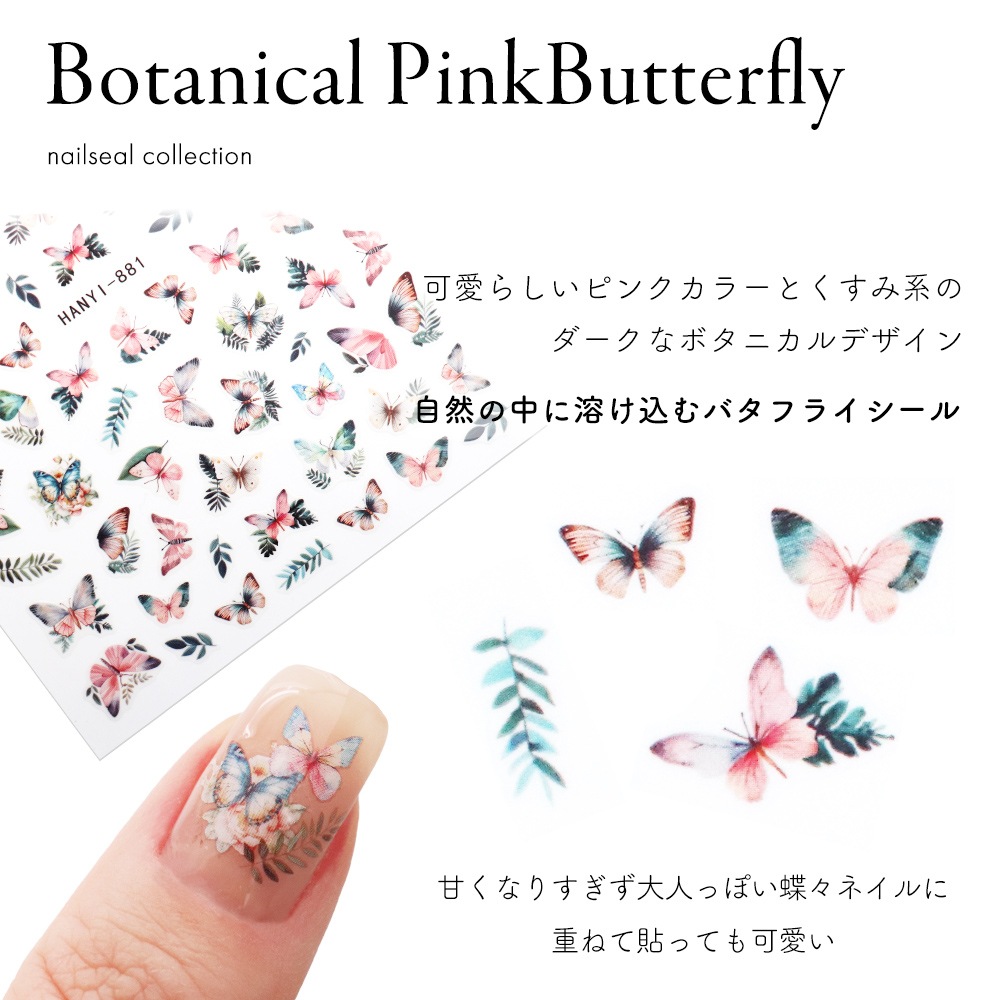【ネコポス送料無料】ネイルシール ボタニカルピンクバタフライシール