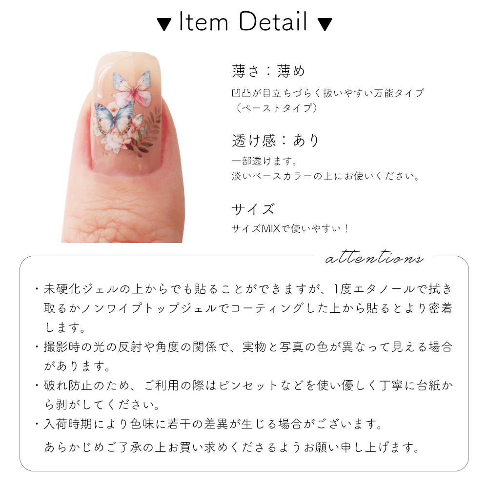 ノンワイプトップジェルでコーティングした上から貼るとより密着します。
