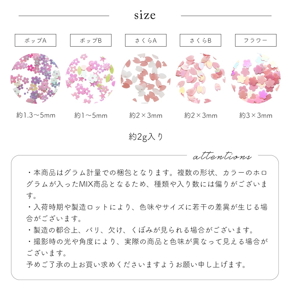 ・本商品はグラム計量での梱包となります。複数の形状、カラーのホログラムが入ったMIX商品となるため、種類や入り数には偏りがございます。
