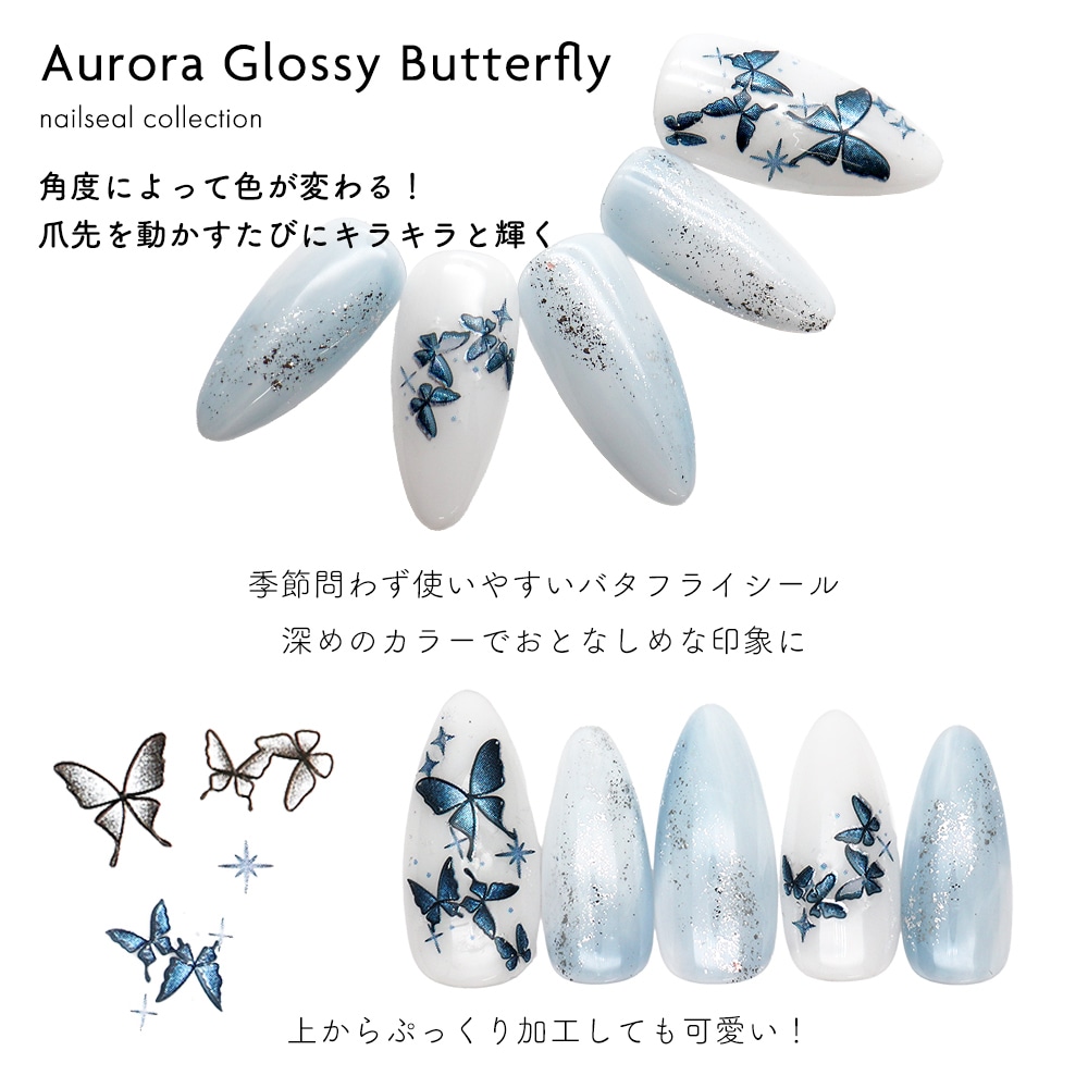 【ネコポス送料無料】ネイルシール オーロラグロッシーバタフライシール 全3種